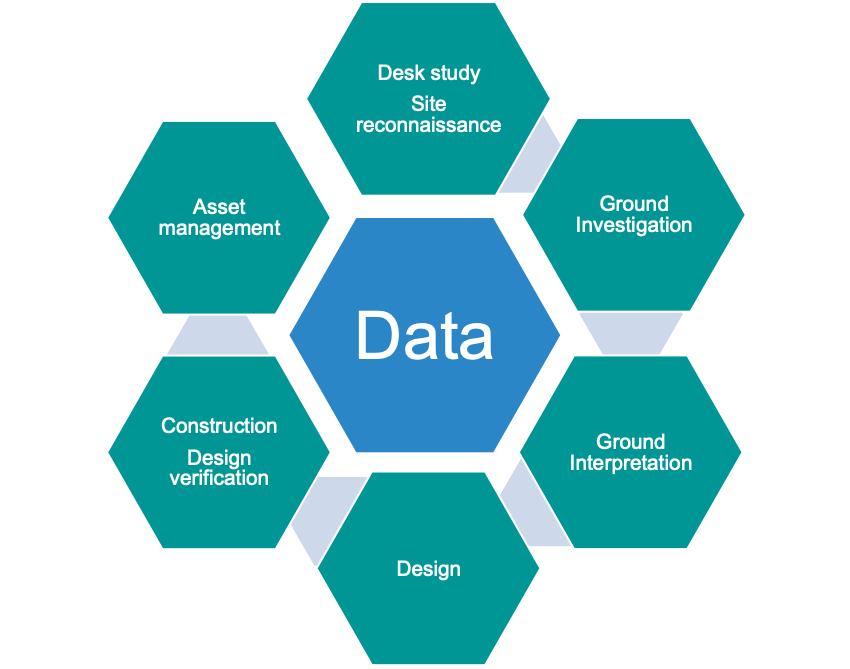 Firstly, we must put data at the centre of the engineering geology life cycle (Figure 4) and map out how data will move through the life cycle and the supply chain. By doing this we ensure data is transferred in the most efficient way possible. This must happen right at the start of the project.