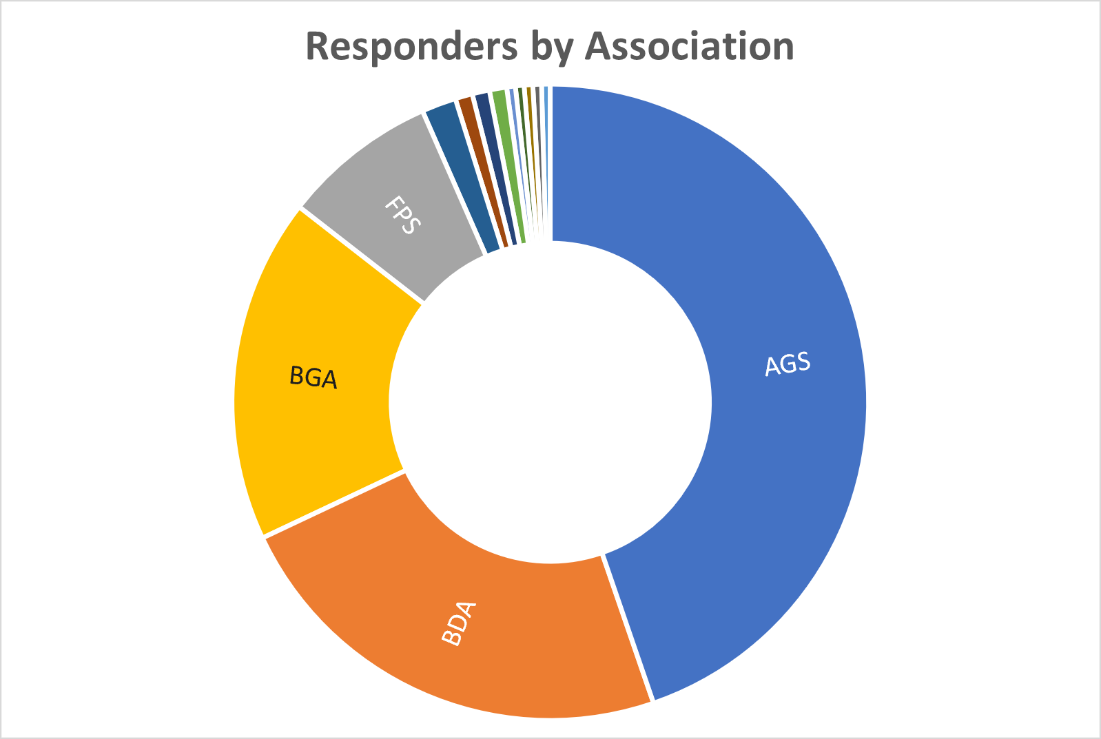 The majority of respondents are members of the AGS (59%), BDA (30%), BGA (23%) and FPS (10%). There are some multiple affiliations of course which makes the totals greater than 100%.