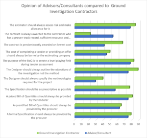 Again, a more detailed analysis of the two main respondent groups i.e., Advisor/consultants and Ground investigation contractors reveals that there is general agreement in the responses to these questions.