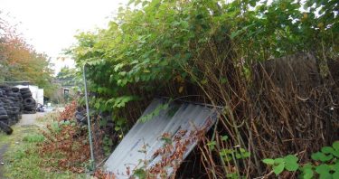 Photo of Japanese knotweed invading a site recorded during a walkover survey. Japanese knotweed is a non-native invasive bamboo-like plant that is…